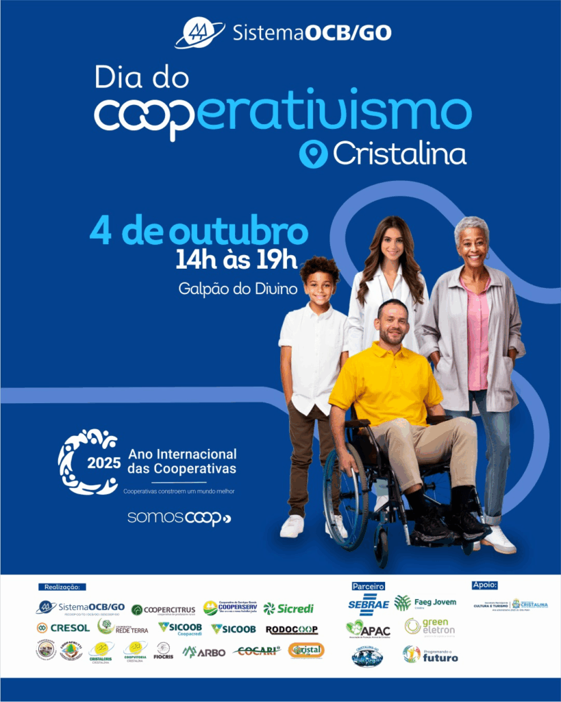 No próximo sábado (4/10), a cidade de Cristalina receberá a 4ª edição do Dia do Cooperativismo, uma iniciativa do Sistema OCB/GO e das cooperativas locais, que neste ano será realizada no Galpão do Divino Espírito Santo, a partir das 14 horas.