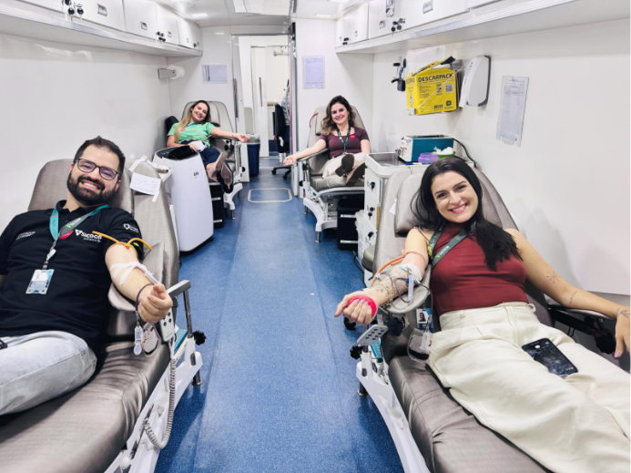 Realizada em parceria com o Hemocentro Estadual Coordenador Prof. Nion Albernaz (Hemogo), a iniciativa foi idealmente articulada para reforçar a cultura de prevenção, cuidado e solidariedade, estendendo o sentido da segurança no trabalho ao compromisso com a vida. Durante todo o dia, uma unidade móvel do banco de sangue estadual esteve presente na agência da T-8 da cooperativa financeira (no Setor Marista, em Goiânia), oferecendo atendimento humanizado, conforto e orientações aos doadores. De acordo com o Hemogo, cada bolsa de sangue pode salvar até quatro vidas, o que significa que a quantidade coletada com a campanha do Sicoob UniCentro Br poderá impactar até 200 pessoas.