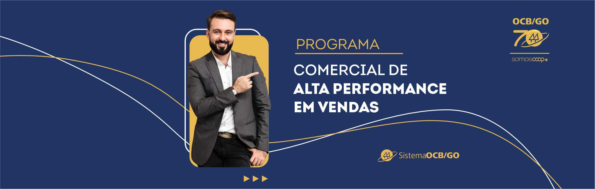 O SESCOOP/GO apresenta o Programa Comercial de Alta Performance em Vendas, com os objetivos de desenvolver a capacidade do time comercial de gerir a carteira como um portfólio estratégico, aumentando profundidade de relacionamento, mix de produtos, retenção e rentabilidade dos cooperados, com uso inteligente de dados e rotinas comerciais.