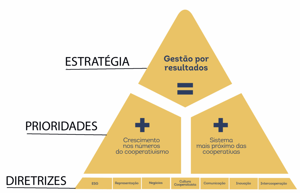O Sistema OCB/GO, baseado em uma gestão por resultados, criou seis diretrizes estratégicas: Gestão e Governança, Representação, Mercado, Comunicação, Inovação e Intercooperação. A atuação institucional forte diante dessas diretrizes vai apoiar o crescimento nos números cooperativistas e tornar o Sistema OCB/GO mais próximo das cooperativas.